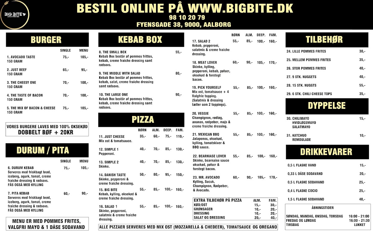 The menu at Big Bite Pizza & Burger offers a diverse range of options, catering to both pizza lovers and burger enthusiasts alike. One of the standout features is the Make Your Own Pizza, where customers have the freedom to choose from a variety of fresh toppings to create a personalized pizza. This customizable option makes it easy to satisfy every taste preference. For those craving classic pizza, the menu also includes a selection of well-crafted pies, each with rich, flavorful ingredients that make every bite enjoyable. Alongside the pizzas, the burger offerings at Big Bite are equally impressive, with a variety of juicy and hearty options that promise to satisfy any appetite. Whether you're in the mood for a customizable pizza or a filling burger, the menu at Big Bite Pizza & Burger provides satisfying choices that are sure to please any palate.